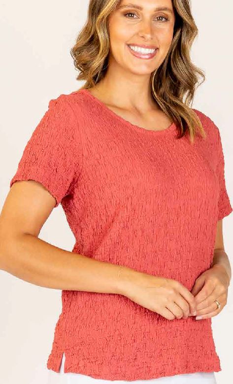 This crinkle top combines comfort and style with a soft blend of 65% cotton, 33% chinlon, and 2% elastane, giving it just the right amount of stretch. Featuring a round neck and playful side splits, it's perfect for adding a fun twist to your casual wardrobe. Lightweight and easy to wear, this top moves with you for effortless all-day comfort.