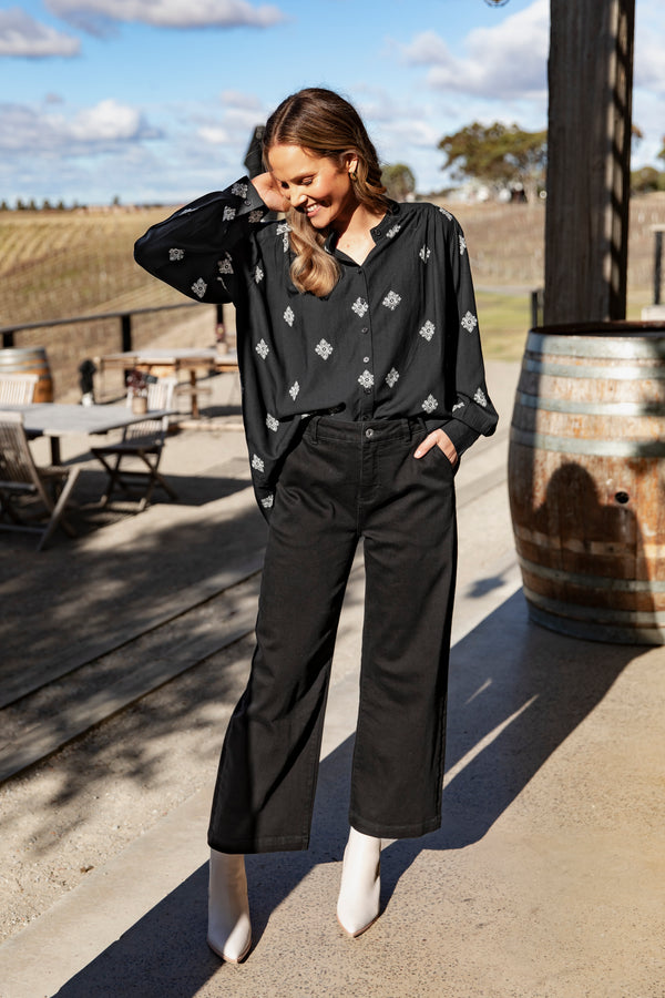 A timeless new print in monochrome and white, the Georgina Blouse will take you from desk to dinner in effortless Elm style. Pair with the Georgina Print Pant for the ultimate twin set.