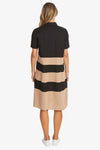 The Kasbah Stripe Dress combines effortless style with comfort, featuring a collared neckline, button-up bodice, and bold stripes.