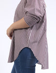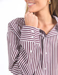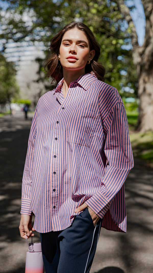 Everyone needs a stripe shirt in their wardrobe! Elm brings the colour and fun to this must-have style, blending beautiful merlot and pink stripes in a classic shirt shape for the win.