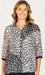 The Velora shirt features 3/4 sleeves and buttons down the front, complete with a wired collar for added style (wear standing up or down). Made from a breezy blend of 70% viscose and 30% nylon, it offers a light and flowing feel perfect for effortless charm.