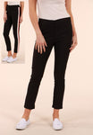 Step up your style game with these side stripe crop pants that blend comfort and flair effortlessly. Featuring a playful side stripe and a flattering crop length, they’re perfect for showing off your favorite shoes. The elastic back waistband ensures a snug yet flexible fit, while the zip fly and flat front waistband keep things sleek. With two handy side pockets and faux backside pockets, you get the look of a classic pant with added practicality. Crafted from a soft, stretchy blend of cotton, nylon, and elastane, these pants move with you all day long. Perfect for casual outings or adding a sporty twist to your wardrobe!