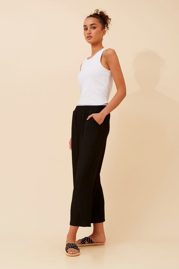 Our crop wide leg pants are a must-have for trans seasonal styling! Pair it with a tank top or solid t-shirt and sandals or sneakers to complete that stylish look....