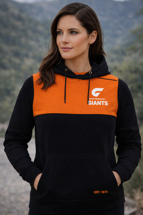 Giants hoodie Fleece Flex fabric. Sublimation print. Anti-pilling fabrication providing performance, warmth and comfort. 94% Polyester 6% Spandex 310 GSM.