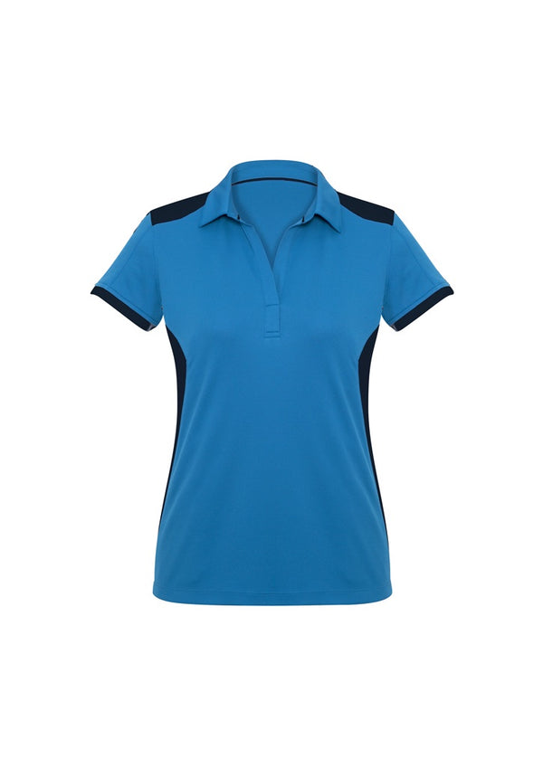 Sizes   6 - 24 Fabric - 100% BIZ COOL™ Polyester Micro Interlock - 145 GSM - UPF 50+ Features - Bold contrast panel design - Self fabric collar and contrast sleeve cuff - Ladies style features...