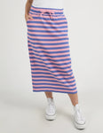 Colour and fun with added versatility! The sunset stripe skirt features an elastic waist with drawcord & side seam pockets. Midi lengthYarn dye stripeElastic waist and side pockets2 x 2...