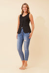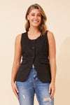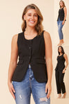 This snug vest features a playful curved hem, a charming round neckline, and three cute buttons to brighten your day.
